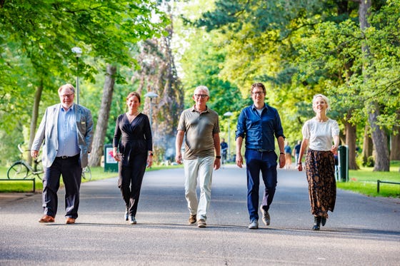 v.l.n.r. Michel Zwaan, Bianca Goemans, Jan Paul de Boer, Roderick Venekamp en Anna Bakker